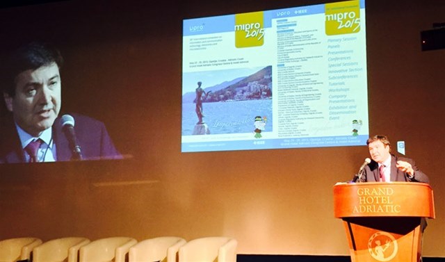 ZAGREB, 27. svibnja 2015. – U Opatiji je danas svečano otvoren 38. Međunarodni ICT skup MIPRO, koji okuplja brojne domaće i inozemne stručnjake iz područja primjene informacijske i komunikacijske tehnologije te srodnih visokih tehnologija u gospodarstvu, obrazovanju, znanosti i upravi. Skup je otvorio prof. dr. sc. Vedran Mornar, ministar MZOS-a u Vladi republike Hrvatske. Hrvatskoj regulatornoj agenciji (HAKOM-u) čiji stručnjaci aktivno sudjeluju u radu radionica i okruglih stolova, te kao autori i recenzenti stručnih radova, ali i voditelji sjednica u okviru CTI, dodijeljeno je najveće priznanje MIPRO-a za tvrtke, ustanove i upravu. Povelju MIPRO, dodijeljenu za izuzetan doprinos razvoju komunikacijske tehnologije i skupova MIPRO, u ime HAKOM-a preuzeo je predsjednik Vijeća HAKOM-a dr. sc. Dražen Lučić.
