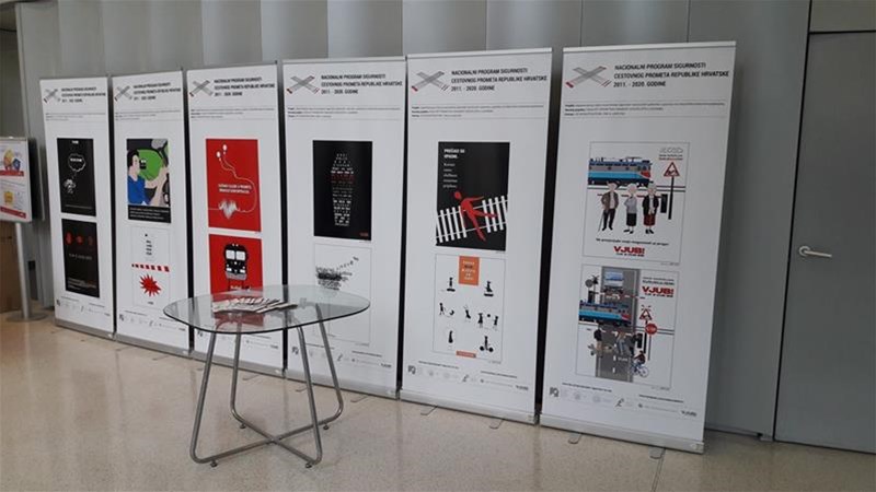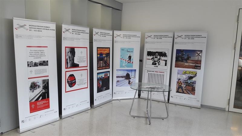 U sklopu projekta „Implementacija mjera za povećanje sigurnosti najranjivijih sudionika u prometu na željezničko-cestovnim prijelazima“, koji se provodi u okviru Nacionalnog programa Ministarstva unutarnjih poslova Republike Hrvatske o sigurnosti cestovnog prometa Republike Hrvatske 2011. – 2020., organizirana je putujuća izložba, na kojoj su predstavljeni radovi na temu sigurnosti na željezničko-cestovnim prijelazima. Autori radova su, koristeći zadane elemente i asocijacije, svojim stilom i senzibilitetom interpretirali odabrane teme te ponudili grafička rješenja prilagođena suvremenim tendencijama vizualne komunikacije, razumljive svima.