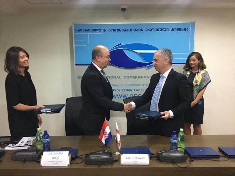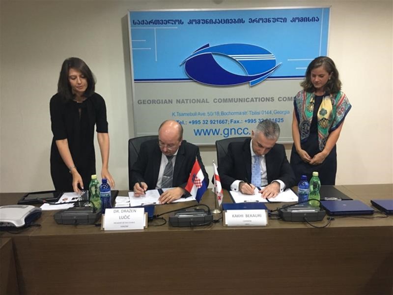 Predsjednik Vijeća HAKOM-a dr. sc. Dražen Lučić i zamjenik predsjednika Vijeća Domagoj Jurjević, dipl. oec., potpisali su sporazum o suradnji (Memorandum of Understanding) u sklopu radne posjete gruzijskom nacionalnim regulatornim tijelom za elektroničke komunikacije (Georgian National Communication Commission – GNCC). Glavne teme razgovora bile su analize tržišta, kontrola radiofrekvencijskog spektra te iskustva HAKOM-a u procesu pristupanja Republike Hrvatske Europskoj uniji.